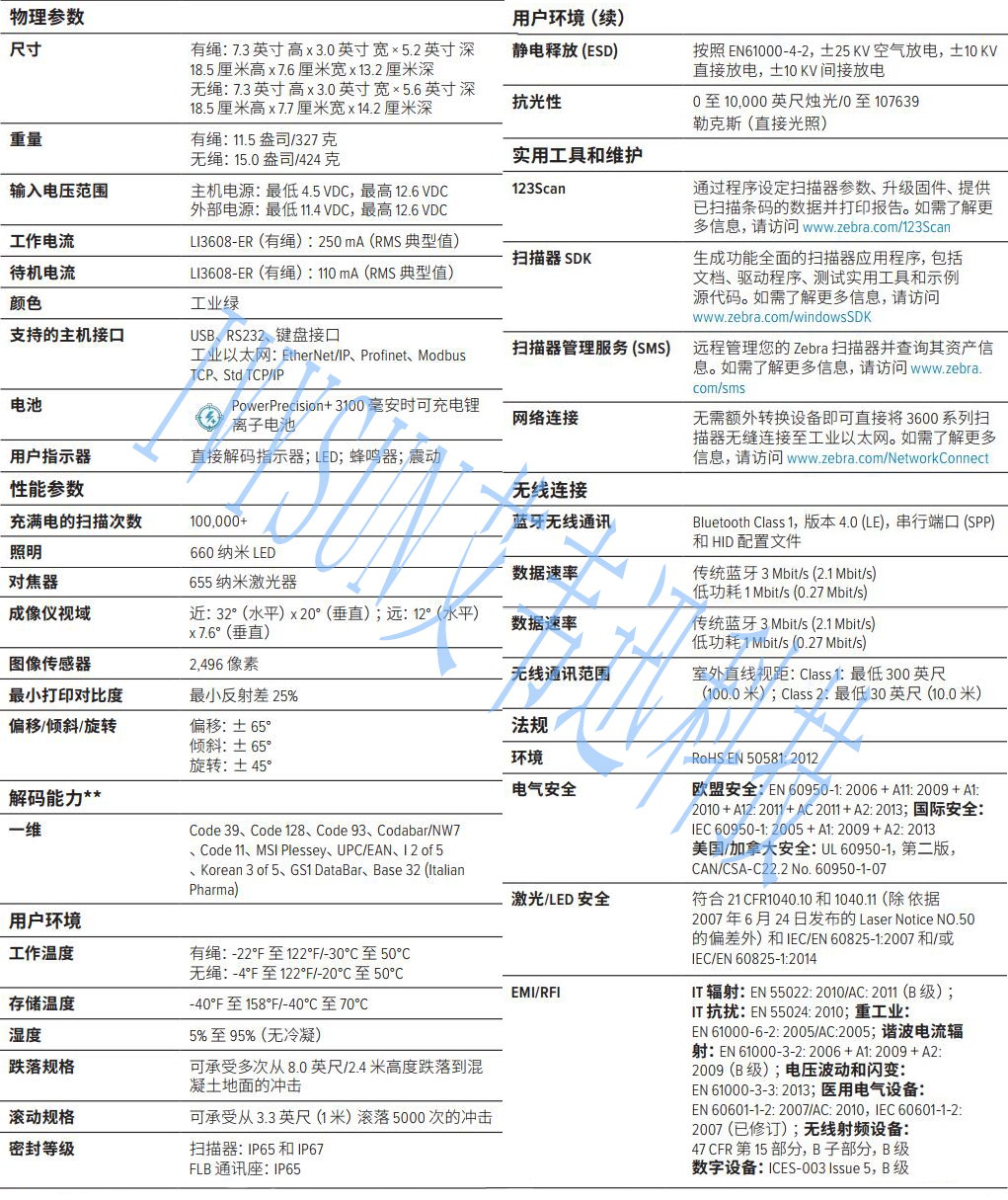 ?斑馬無繩LI3678-ER掃描器性能特點